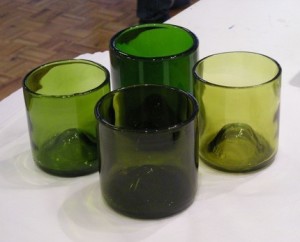 4 tumblers..from recycled wine bottles….wonderful work…cud u also teach me if u can…i really would be grateful to u…thanks…