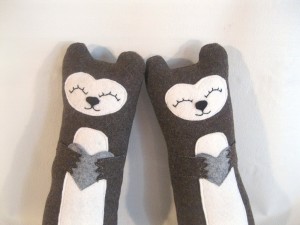 Riley Construction makes the most-wonderful stuffed toys. All of their toys are made from upcycled + recycled materials! Each plushie is made from scratch – starting with the sketching of the designs, turning them into patterns, and then final creation of each fuzzy friend. I love their sweet, little faces, colors and details.