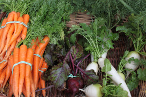 A couple of weeks ago during our winter camping trip, we spent a morning at the local farmer’s market. My favorite organic farm showcased was Frog Song Organics – I thought the hand-painted wooden sign was cute and they had by far the best looking display with beautiful produce at the market.