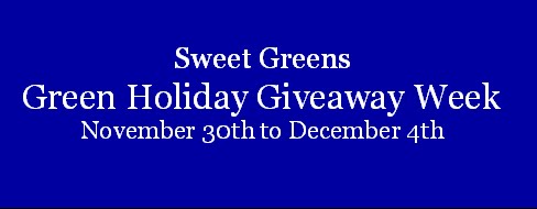 Are you wondering what my Green Holiday Giveaway Week is, read about it here. I hope you have enjoyed Sweet Greens Green Holiday Giveaway Week as much as I have. Remember you have until December 11th to enter all 25 giveaways. {They are all listed on the leftside of the blog} Good Luck.