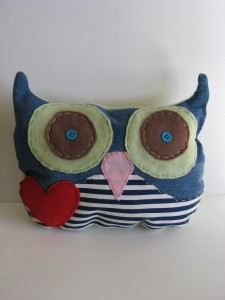 I made Olivia {The Woodland Valentine Owl} to give to Eben last year on Valentine’s Day. She is made using pieces of worn out clothing from our closets. Olivia has become one of Eben’s prized possessions and she has her own spot on his bed. I wish for Olivia to always stay in our family and that one day, Eben might give her to his own child on Valentine’s Day.
