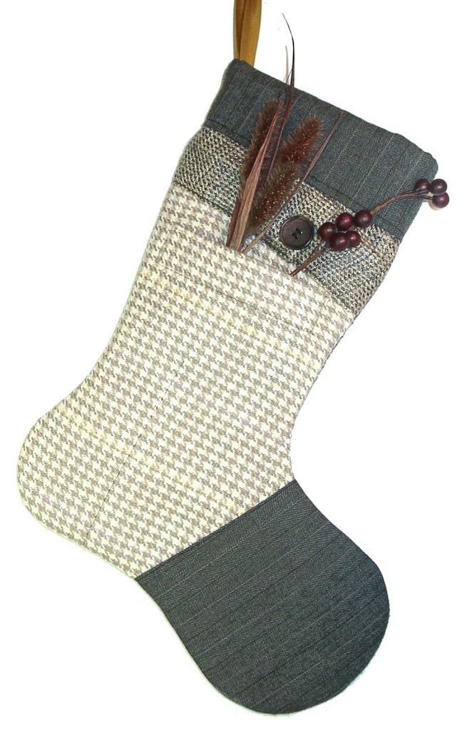 The holidays are right upon us, and my first giveaway from the 12 Days of Etsy will make your mantle look lovely this holiday season. It is a lovely stocking made by the fabulous Etsy shop Mandinka Designs. This stocking is a “patchwork of yummy soft wools and cottons on the outside, and fully lined with satiny suit coat lining on the inside.” You can hang this lovely stocking from your mantle and stuff it full of goodies for the holidays and then when the holidays are over, use it anywhere in your house as a lovely decoration.